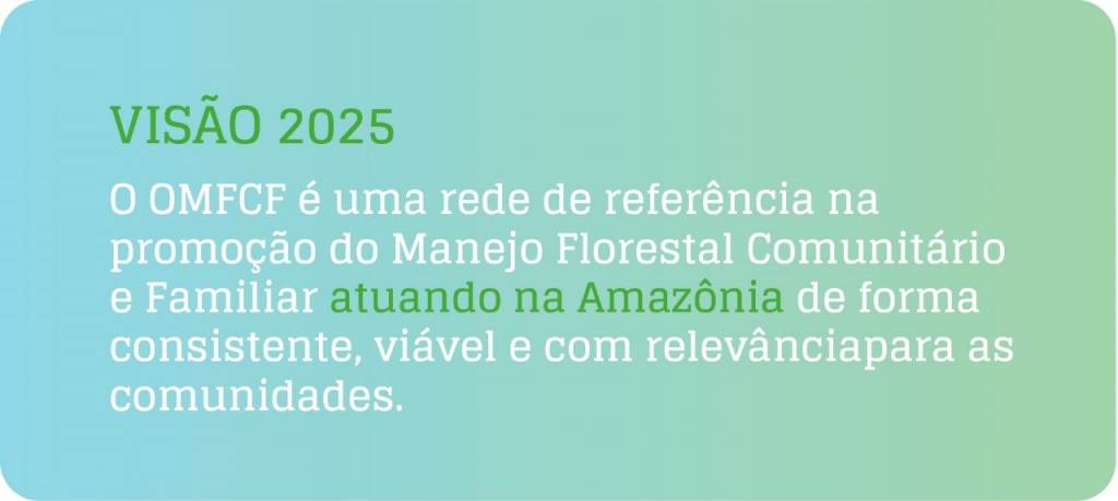É nesse contexto e, acreditando na prática do manejo florestal como uma alternativa eficaz para utilização responsável dos recursos naturais, que nasceu o Observatório do Manejo Florestal Comunitário e Familiar (OMFCF). A iniciativa articula diversas organizações da sociedade civil, institutos de ensino, pesquisa e comunidades, com a missão de promover o manejo florestal como uma estratégia relevante, consistente e viável para a sustentabilidade da região amazônica. Nesse sentido, busca contribuir para a valorização e garantia dos direitos e dos modos de vida de agricultores familiares, povos e comunidades tradicionais da Amazônia, além da construção de um modelo de desenvolvimento ambientalmente sustentável e socialmente justo.